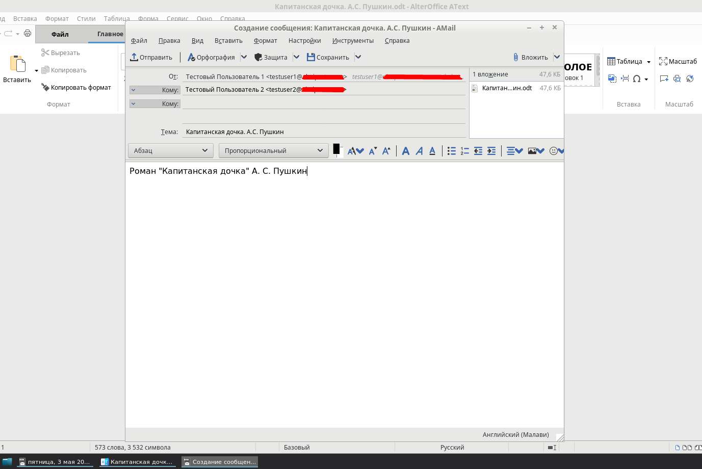 Для отправки документа из AlterOffice с помощью почтового клиента AMail нужно: