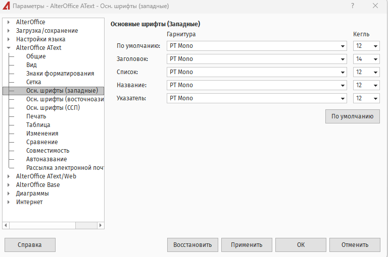 Замена шрифта В AlterOffice для AText на платформе Windows